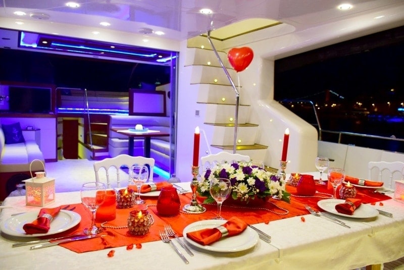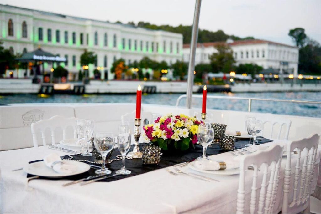 Boğaz’ın huzurlu sularında süzülen bir yat, hafif müzik eşliğinde hazırlanan romantik bir akşam yemeği ve sadece size özel bir atmosfer…
