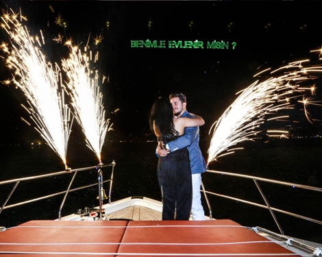İstanbul Boğazı’nın eşsiz manzarasında, modern ve minimalist bir organizasyonla, lüks bir yatın güvertesinde sevdiğinize “Benimle evlenir misin?” demek…